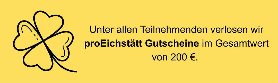 Durch Ihre Meinung wirken Sie aktiv am Prozess der Einzelhandels- und Innenstadtentwicklung und damit an der gesamten Weiterentwicklung der Stadt Eichstätt mit. Um ein möglichst umfassendes Bild zu erreichen, benötigen wir Ihre Unterstützung.