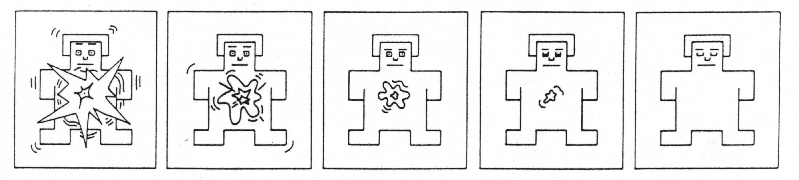 Bitte setzen Sie den roten Kreis innerhalb der Figur, die Ihren Zustand am besten beschreibt.
